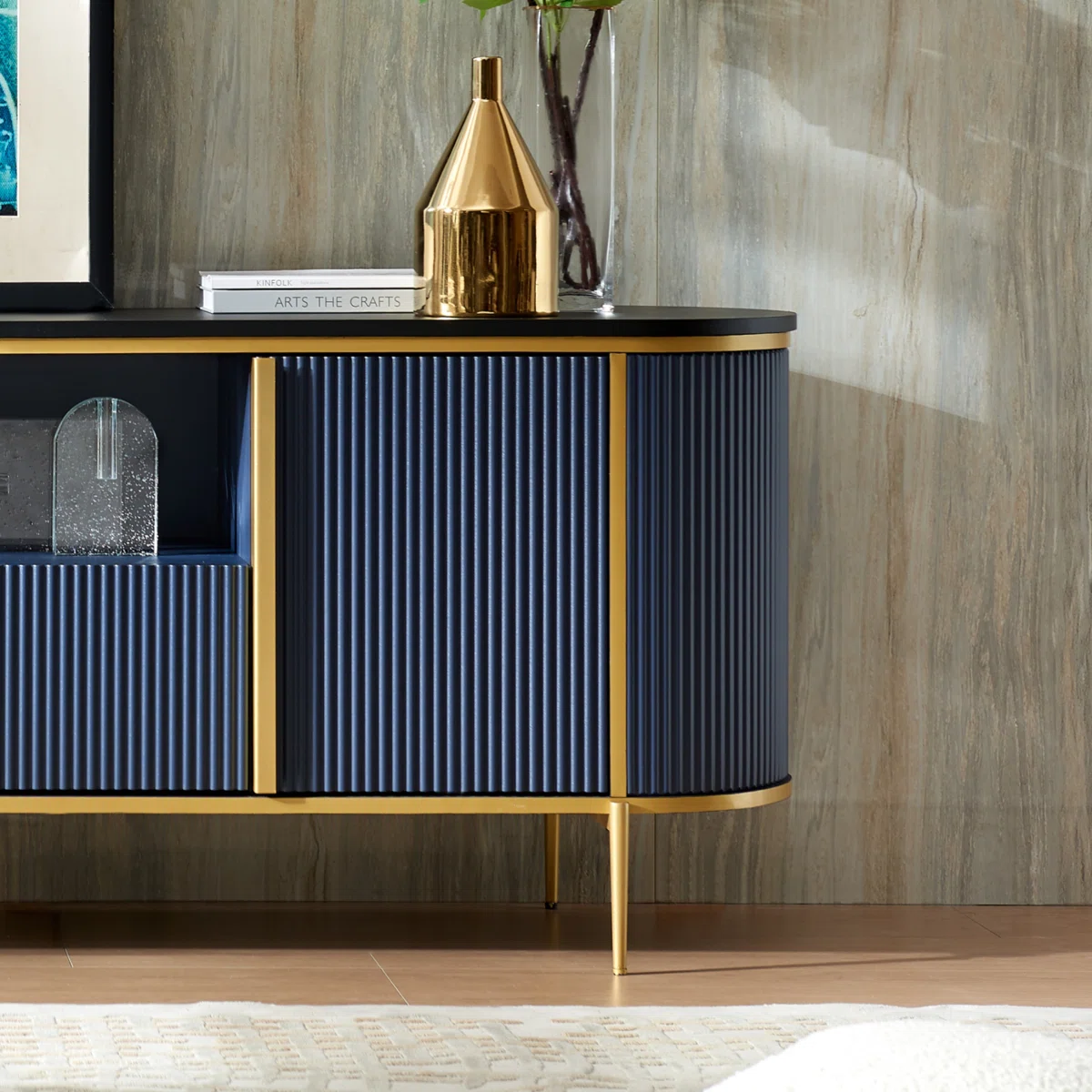 Sleek dark blue finish elevates any modern or glam living room setup.