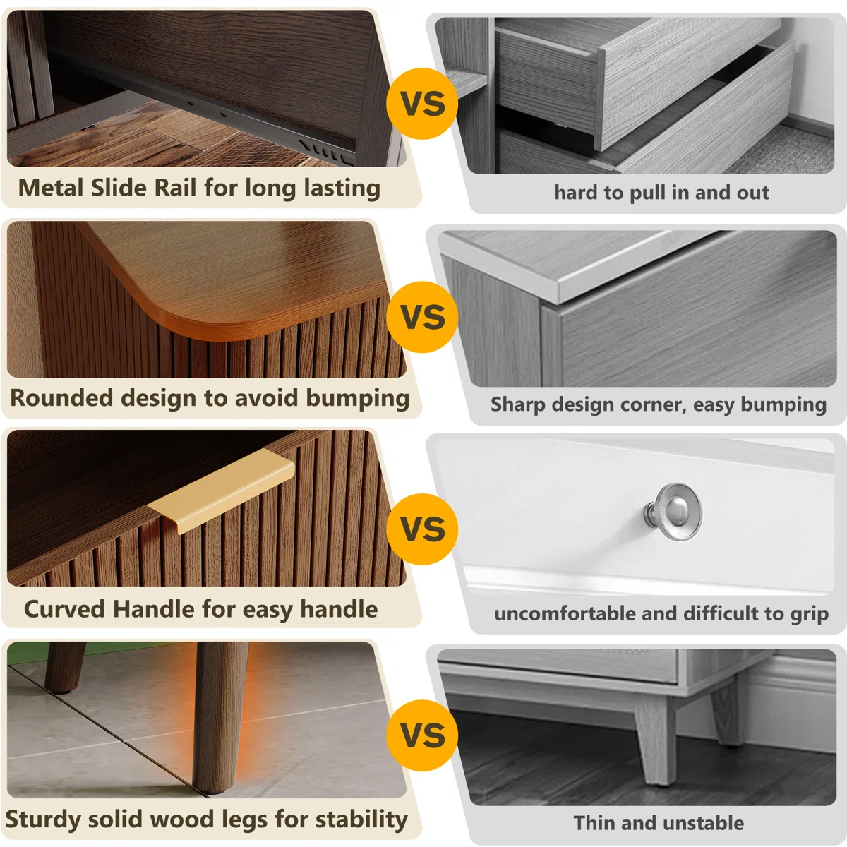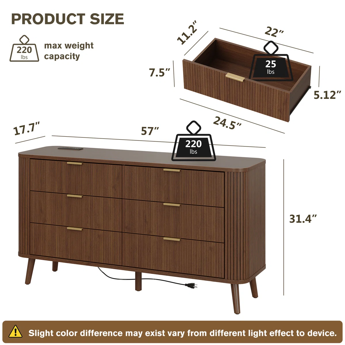 • Fluted side panel design and fluted drawer fronts for mid-century modern style