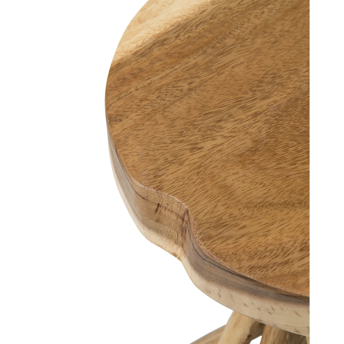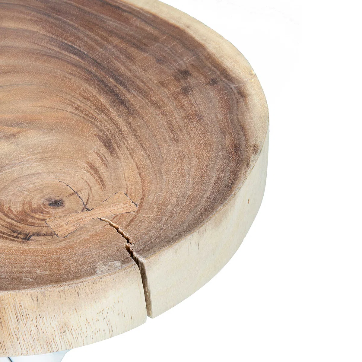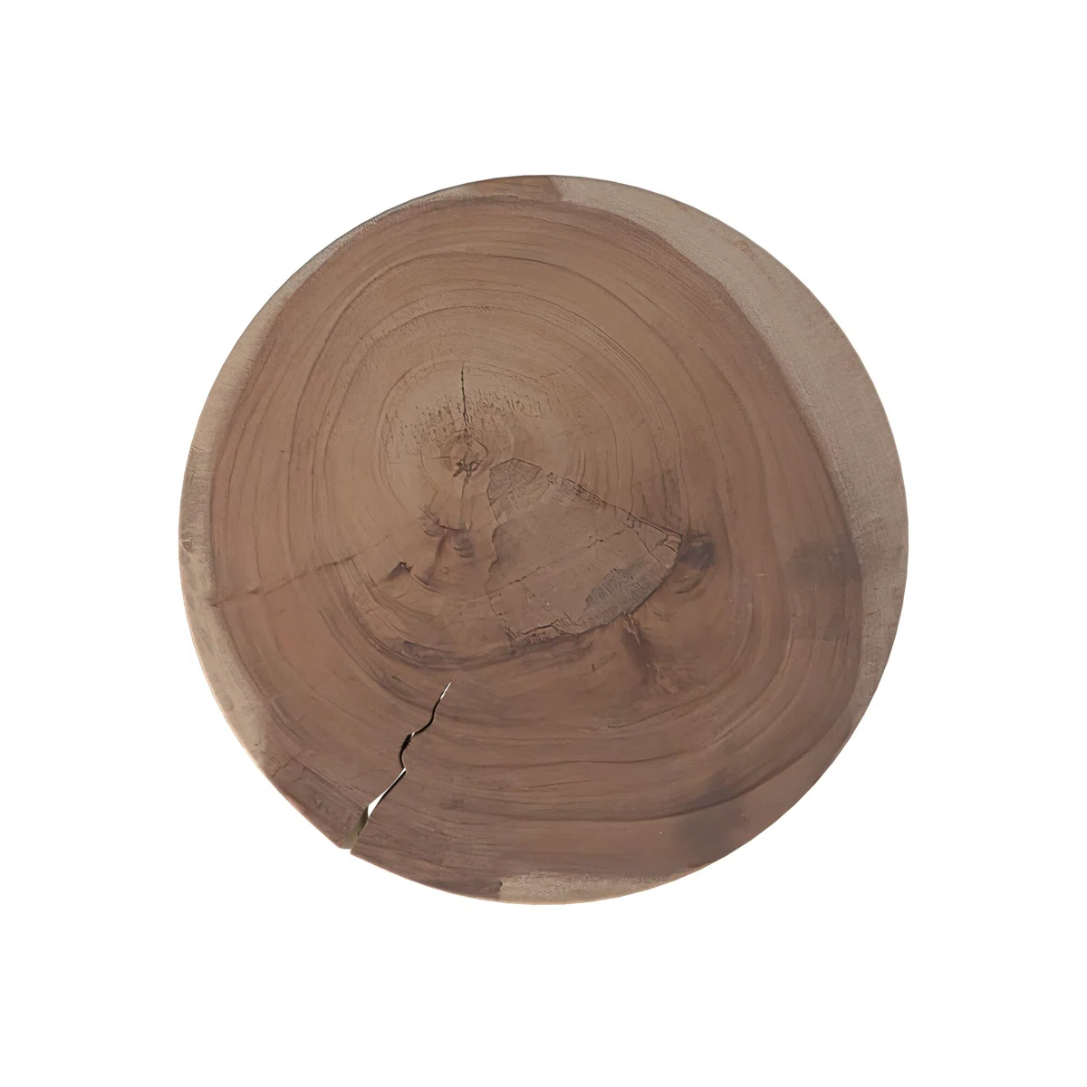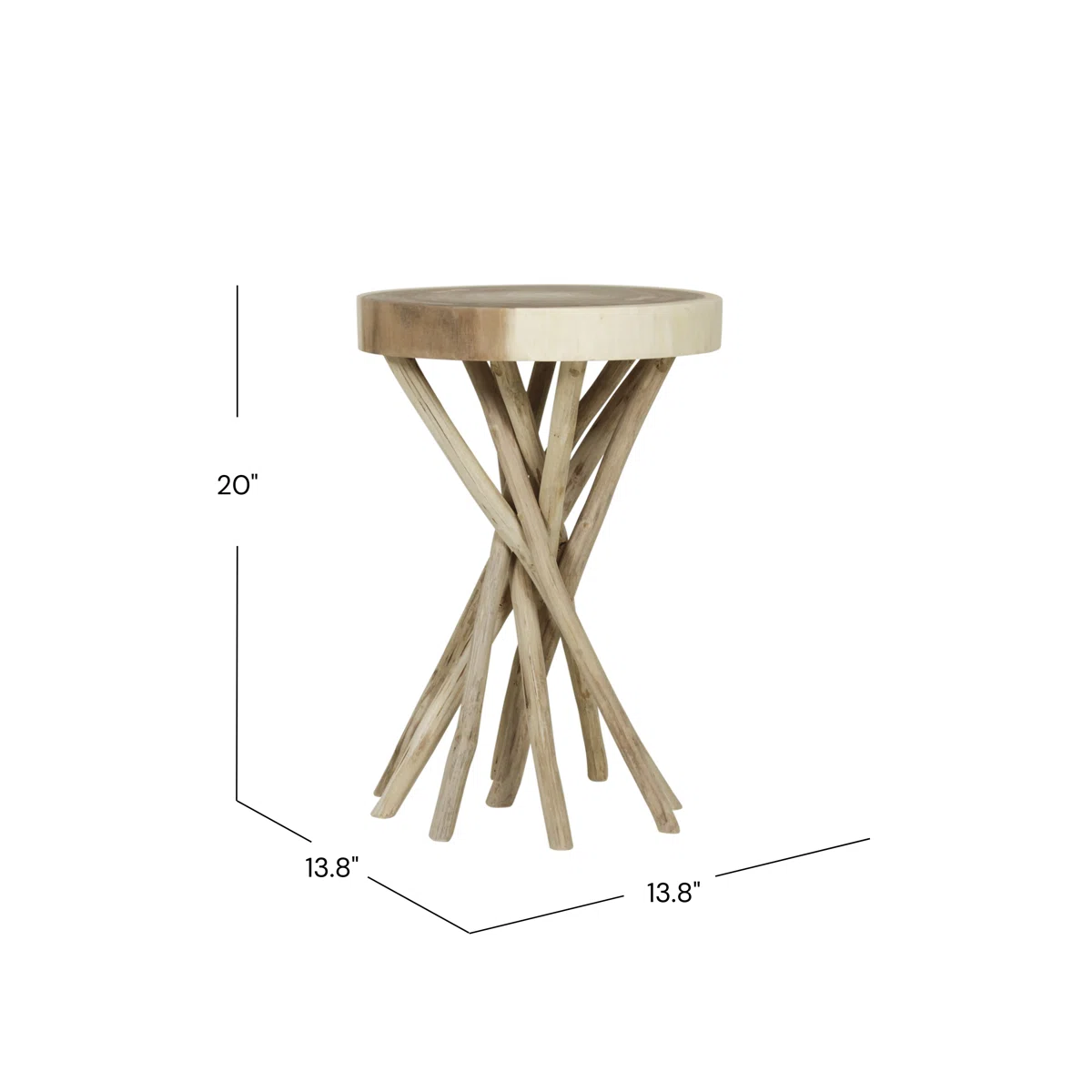 Bring natural texture and sculptural beauty into your home with this solid wood pedestal end table. Standing 20 inches tall with a compact 13.8-inch round tabletop, this piece is the perfect spot for a morning coffee, a favorite book, or a decorative plant. Its slim profile makes it ideal for small spaces—whether you place it beside a sofa, next to a cozy reading chair, or use it as a striking plant stand. Crafted from solid teak wood, the table showcases a warm natural grain on top, paired with an artistic branch-inspired pedestal base that adds organic movement and visual interest. Every table features unique wood knots and natural variations, giving each piece its own distinct character. Arriving fully assembled, this piece is ready to elevate your space the moment it arrives—no tools, no hassle, just instant style.