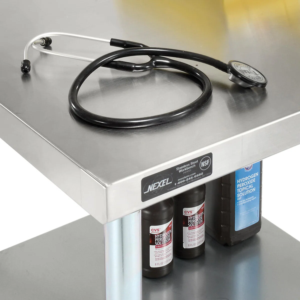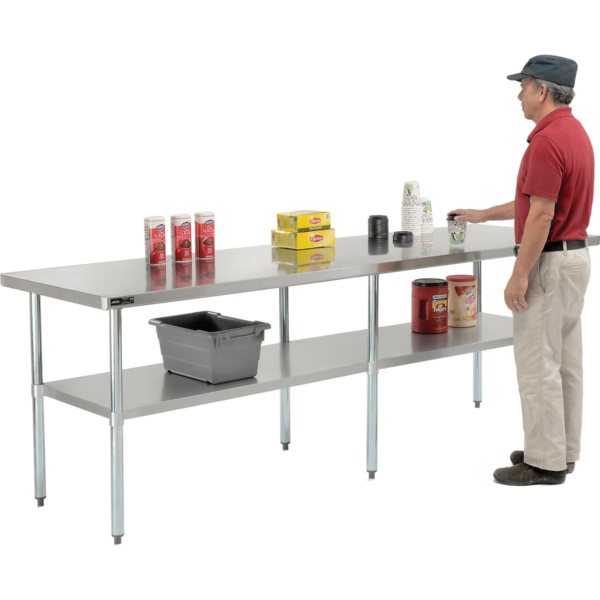 Upgrade your workspace with this heavy-duty 96″-wide stainless steel top workbench by Nexel. Featuring an 18-gauge 430-series stainless steel work surface, it’s built to withstand demanding tasks in a garage, workshop, kitchen or warehouse. The industrial-grade frame includes an integrated undershelf for added storage, letting you keep tools, parts or supplies within easy reach. With overall dimensions of approximately 35″ H × 96″ W × 30″ D, this bench provides a large, durable surface for projects of all kinds