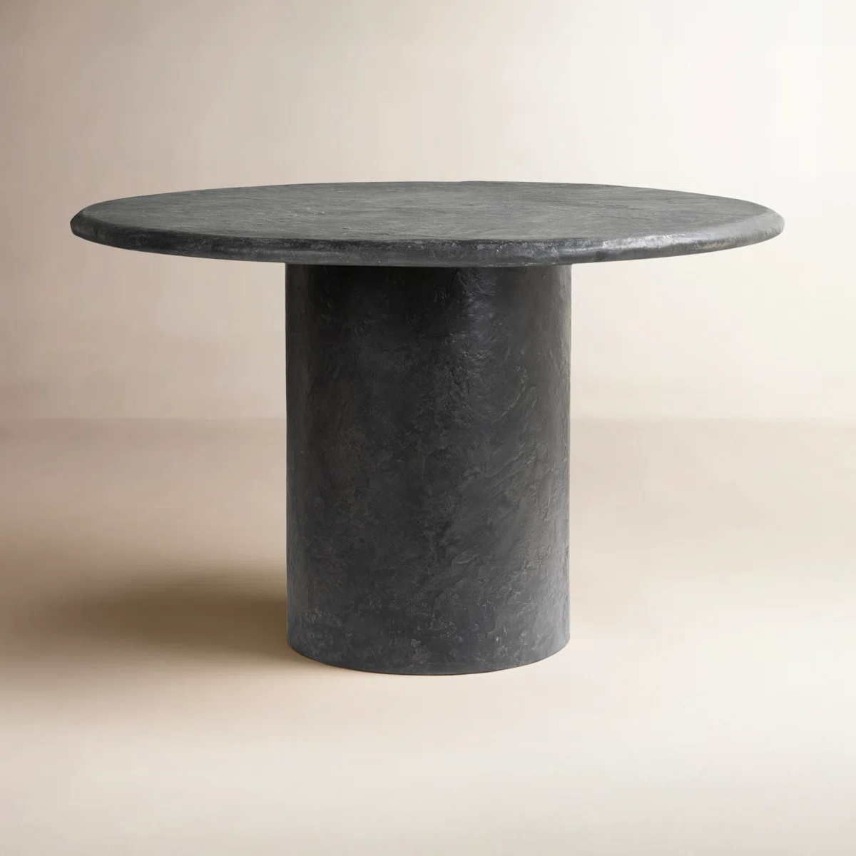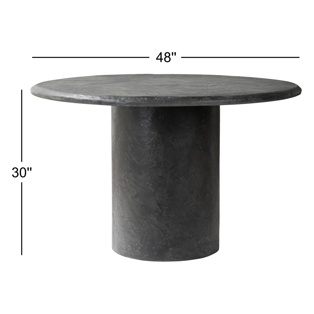 The Birch Lane Nolhan Dining Table Base brings sculptural sophistication to any dining space with its textured black concrete construction. Designed with a bold cylindrical pedestal and a thick round tabletop surface, this 48-inch table base delivers a sleek, contemporary look ideal for kitchens, dining rooms, bistro areas, or hall spaces. Its solid concrete build provides excellent durability, while the minimalist silhouette keeps the design modern and refined. Seating up to four, this piece serves as a functional and stylish focal point for everyday dining or intimate gatherings. Chairs are not included, and assembly is required with all tools provided.