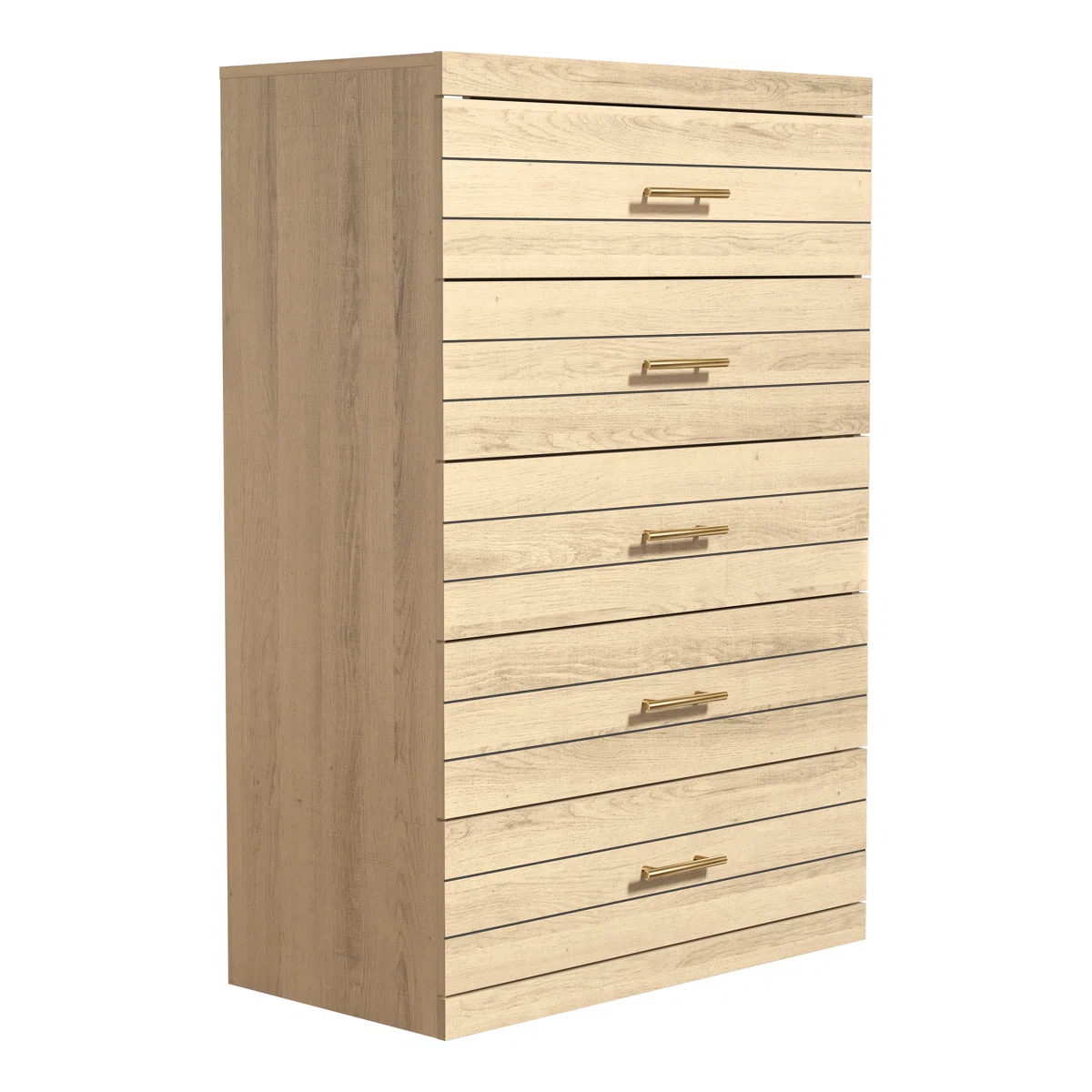 Upgrade your bedroom with the Onna 5-Drawer Dresser, a perfect combination of sleek modern design, durable construction, and practical storage. Measuring 30.7" wide, this elegant dresser provides five spacious drawers to help you keep your clothes, linens, and accessories neatly organized while enhancing your room’s aesthetic.