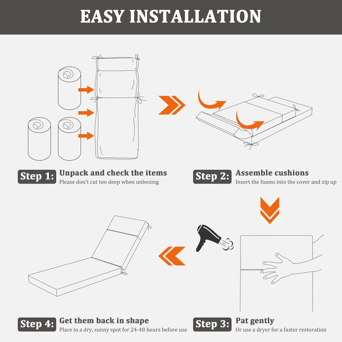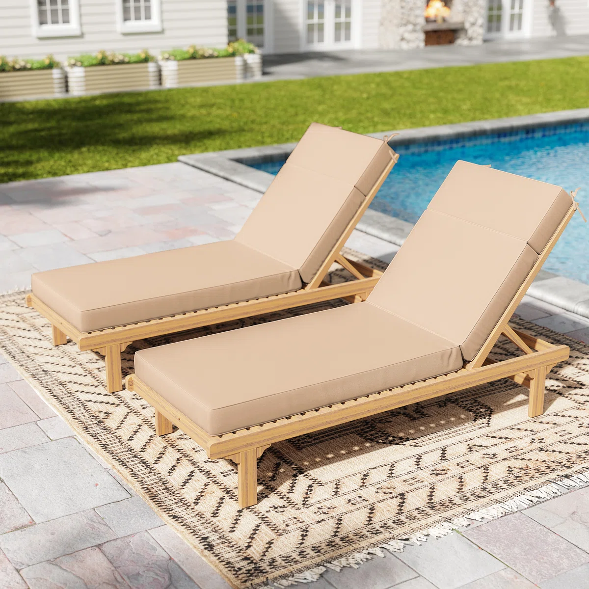 Filled with high-resilience 4-inch foam, these lounge chair cushions provide superior support, relieving back strain and evenly distributing pressure for hours of comfortable lounging. The ergonomic design gently contours to your body, while the secure straps ensure the cushions stay perfectly in place, even during movement.