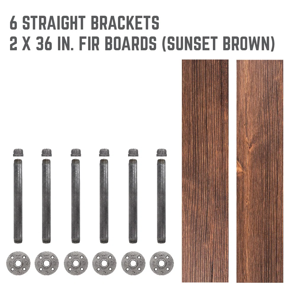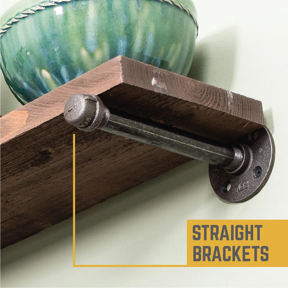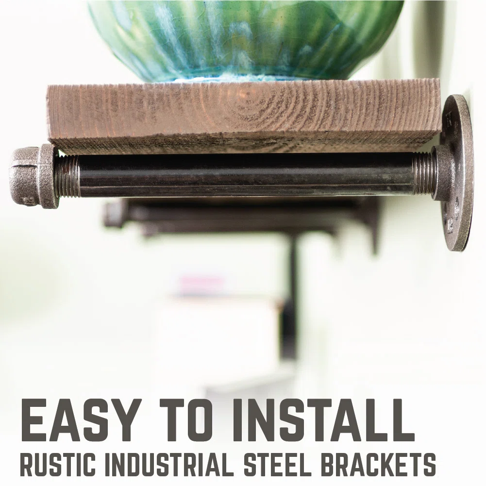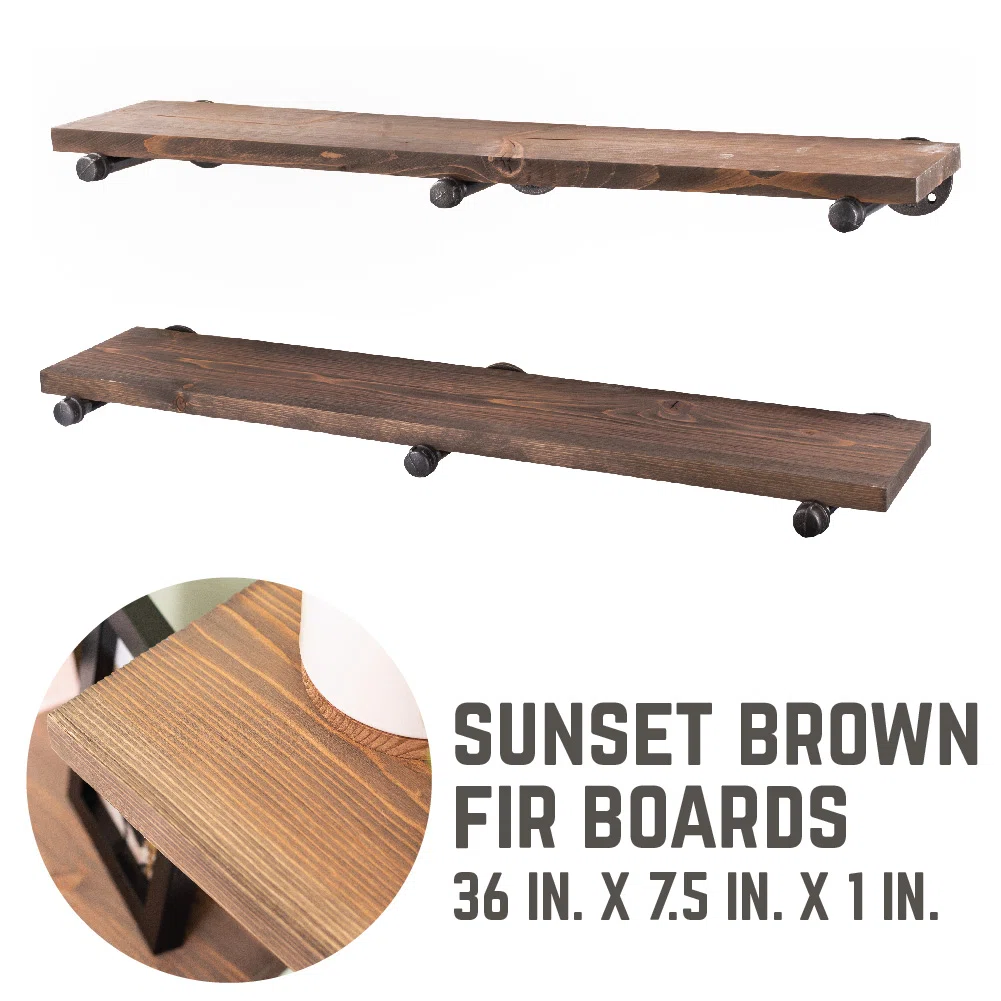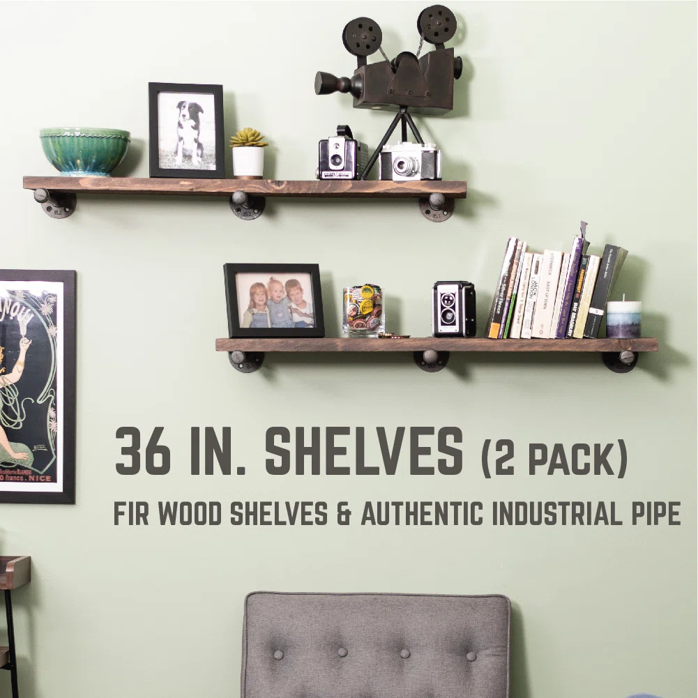 The Pingree 36" Solid Wood Floating Shelves bring rugged industrial charm and dependable storage to any wall in your home. Crafted from genuine fir wood sourced from northern New Mexico and supported by heavy-duty industrial pipe brackets, this shelf set delivers exceptional strength and style. Perfect for bars, dens, garages, kitchens, or modern rustic interiors, each shelf is weight-tested to support evenly distributed loads when installed directly into studs. With natural wood grain variation and pipe fittings that require a simple clean-and-seal prep, these shelves offer authenticity, durability, and a timeless industrial aesthetic.