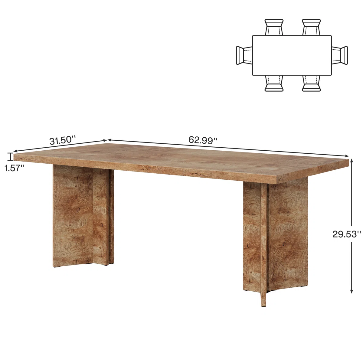 Create a warm and inviting gathering space with the Rahn Dining Table, designed to bring family and friends together for everyday meals and special occasions. Crafted from durable engineered wood, this 63-inch rectangular dining table features a rustic walnut finish that highlights the natural grain variations, adding depth and character to your dining area or kitchen.