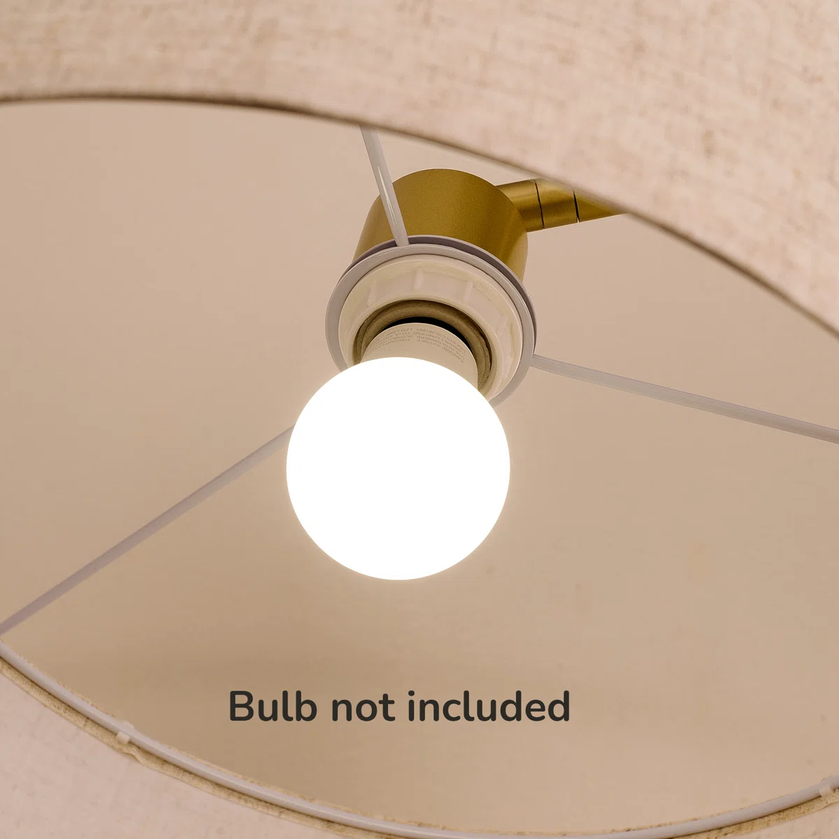 Soft Ambient Lighting: Creamy white linen drum shade diffuses light for a warm, inviting atmosphere.