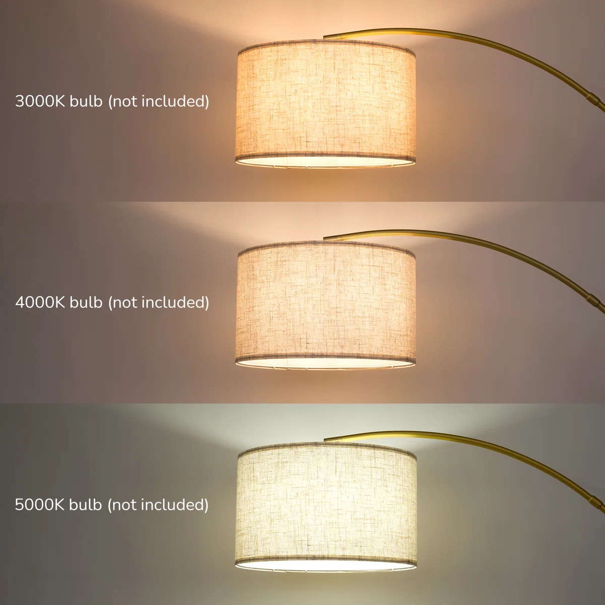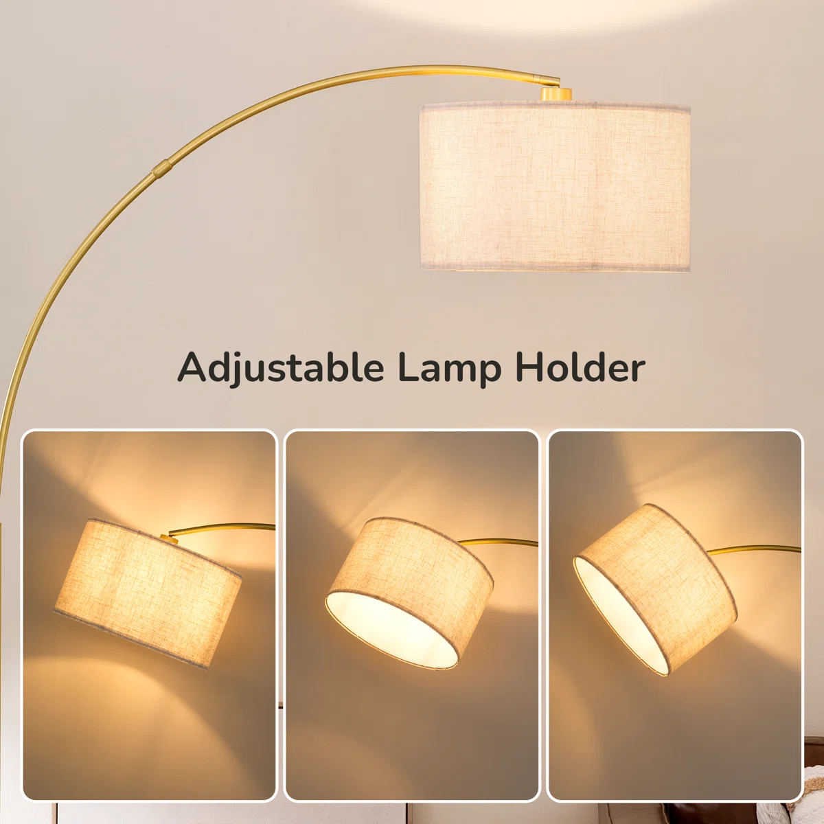 Elevate your home lighting with the Salcedo 78.4" Arched Floor Lamp, a stunning blend of modern design and timeless elegance. Crafted from premium iron with a matte black finish and gold accents, this lamp adds sophistication and warmth to any space. Its gracefully arched silhouette and cream linen drum shade create a soft, diffused glow that enhances the ambiance of your living room, bedroom, or reading nook.