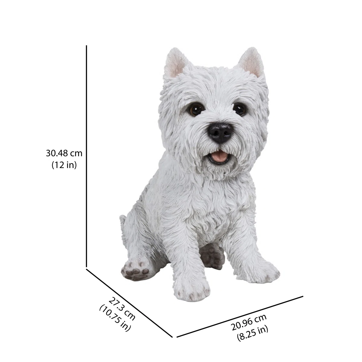 Add charm to your home or garden with the Sitting White Terrier Dog Statue by Hi-Line Gift Ltd. Crafted from durable polyresin with lifelike details, this decorative statue is suitable for both indoor and outdoor display. Its UV, water, and weather-resistant finish ensures long-lasting durability, making it an ideal gift for dog lovers or a stylish accent for your patio, garden, or interior spaces.