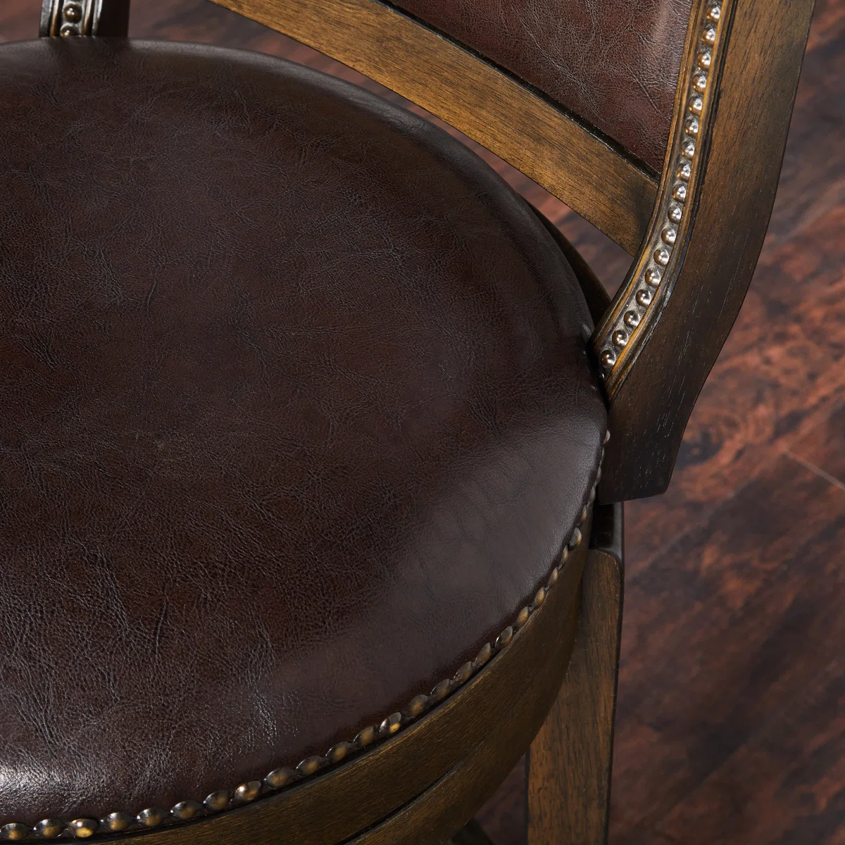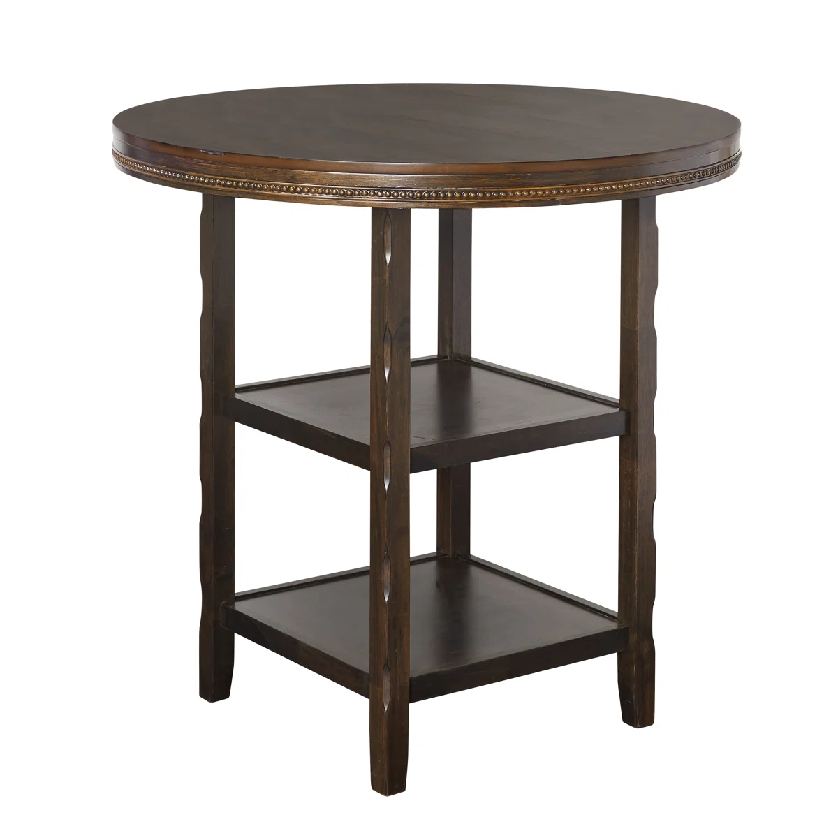 The Strang 4‑Person 42.5″ Dining Set by Darby Home Co brings elevated style and function to a compact space. This set includes a 42.5″ round dining table finished in deep brown with nail‑stud trim around the tabletop edge and lower shelves for extra storage. Paired with four swivel chairs featuring padded faux leather seats and nail‑stud detailing, the set combines comfortable seating and subtle luxury. Ideal for dining rooms, breakfast nooks or game‑room setups, this dining package makes the most of space without sacrificing design.