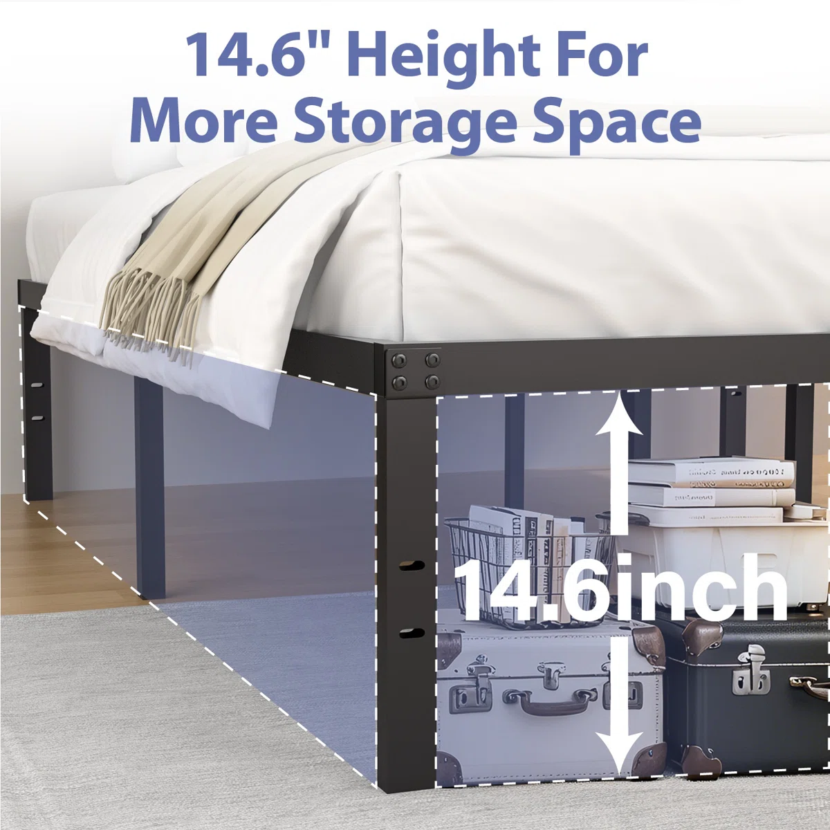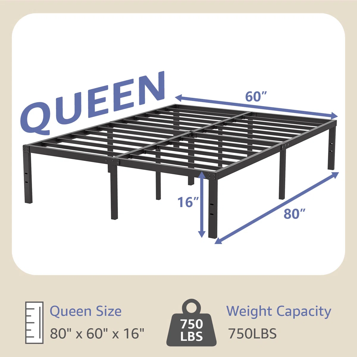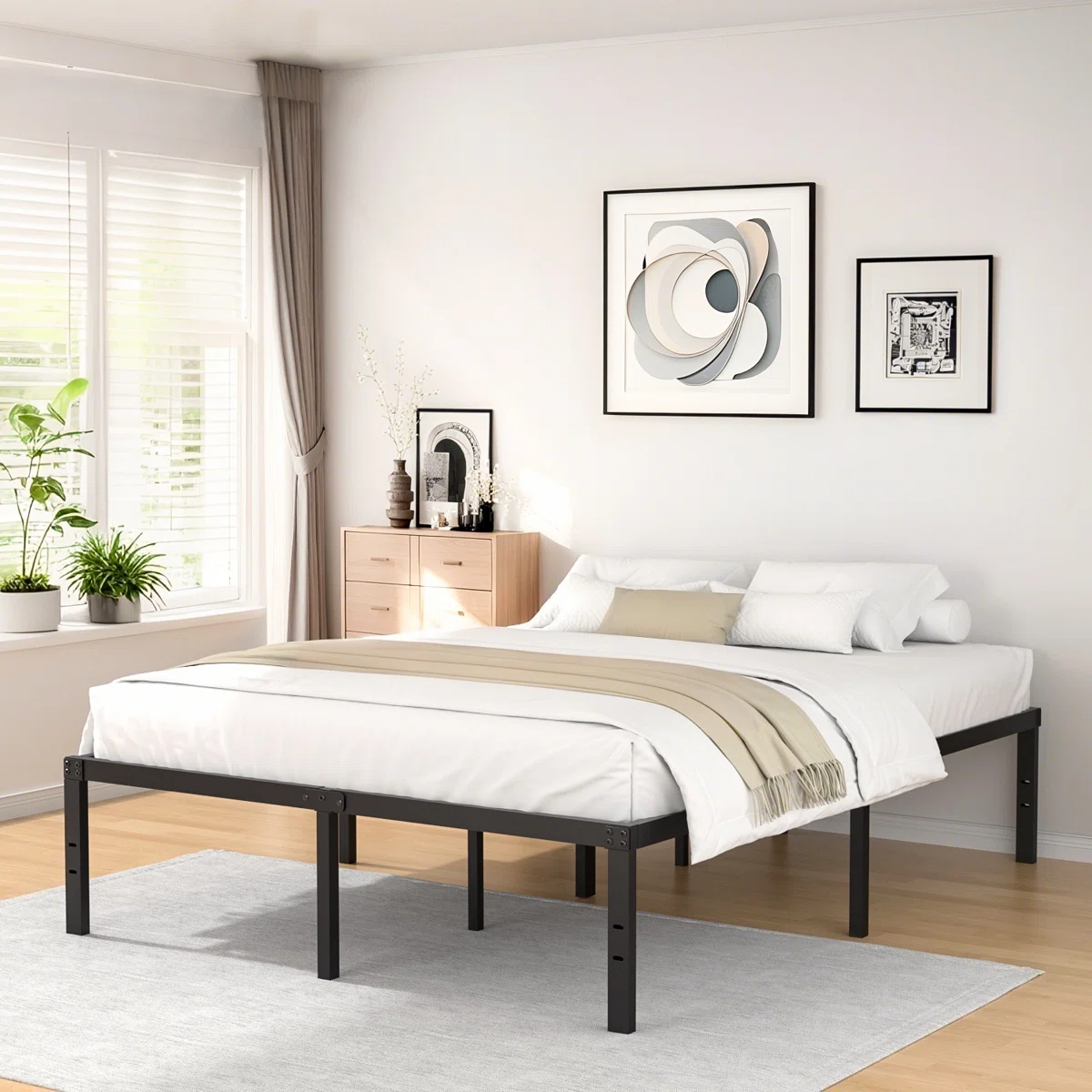 The Turberville 16" Black Metal Platform Bed Frame by Alwyn Home is a strong, minimalist foundation built to support memory foam, latex, and spring mattresses without a box spring. Designed with durable steel slats, a quiet structure, and a generous 14.6" underbed storage space, it blends practicality with modern simplicity. Compatible with bolt-on headboards and footboards, easy to assemble, and engineered for long-term stability, this bed frame brings reliability and fresh style to any bedroom.