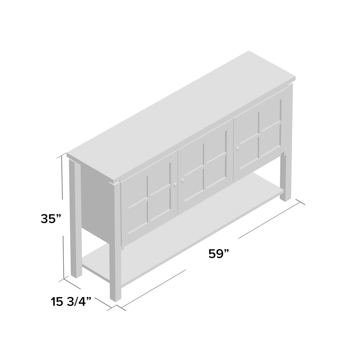 • Overall dimensions: 59" W x 15.7" D x 35" H