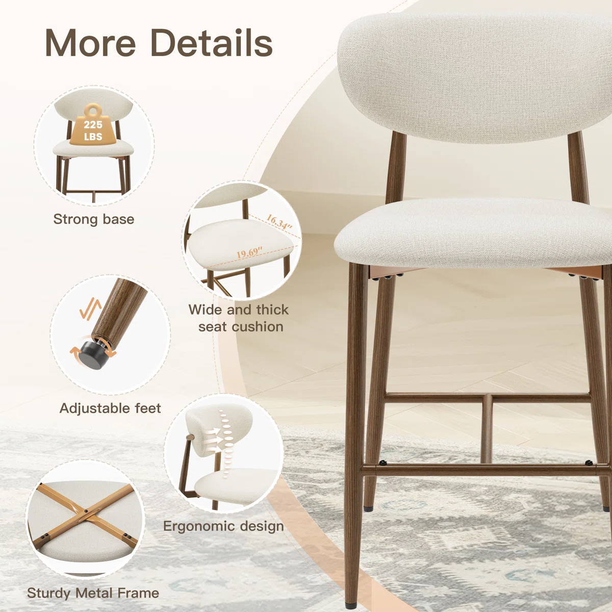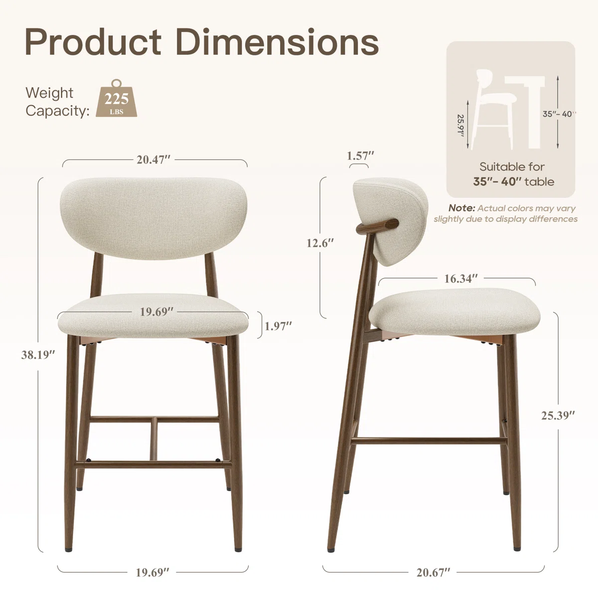 • Overall dimensions: 37.4'' H x 22'' W x 20.5'' D; Seat Height: 25.2'' H