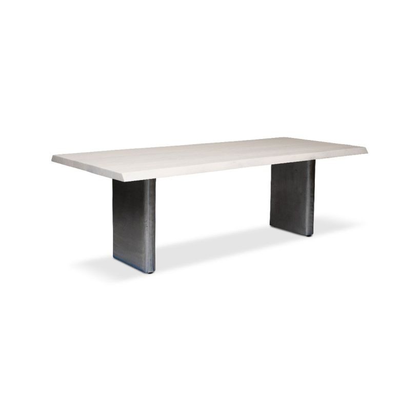 Urbia Brooks Dining Table – 40” x 92” White Wash Top with Antique Nickel Cast Slab Base (IL-BRO-DT-092WW-0605) – Closeout
