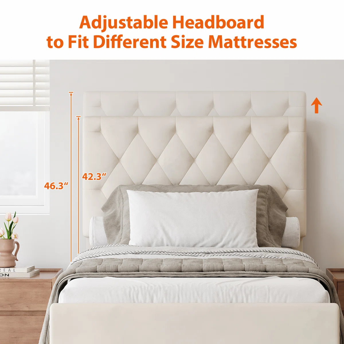 • Adjustable headboard height: 42"–46" for personalized comfort