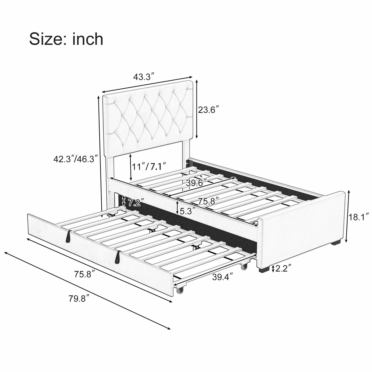 • Includes twin trundle with smooth, noise-free wheels for overnight guests