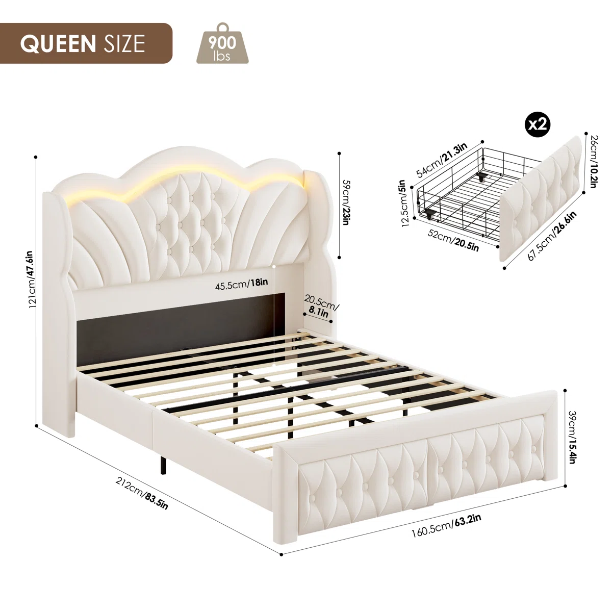 Spacious under-bed sliding drawers provide ample storage for clothes, bedding, and other essentials, keeping your room clutter-free. Designed for quiet comfort, the frame features noise-reducing stickers, ensuring a serene sleeping environment. With easy assembly and a timeless design, this wingback storage bed is the ultimate centerpiece for modern, elegant bedrooms.