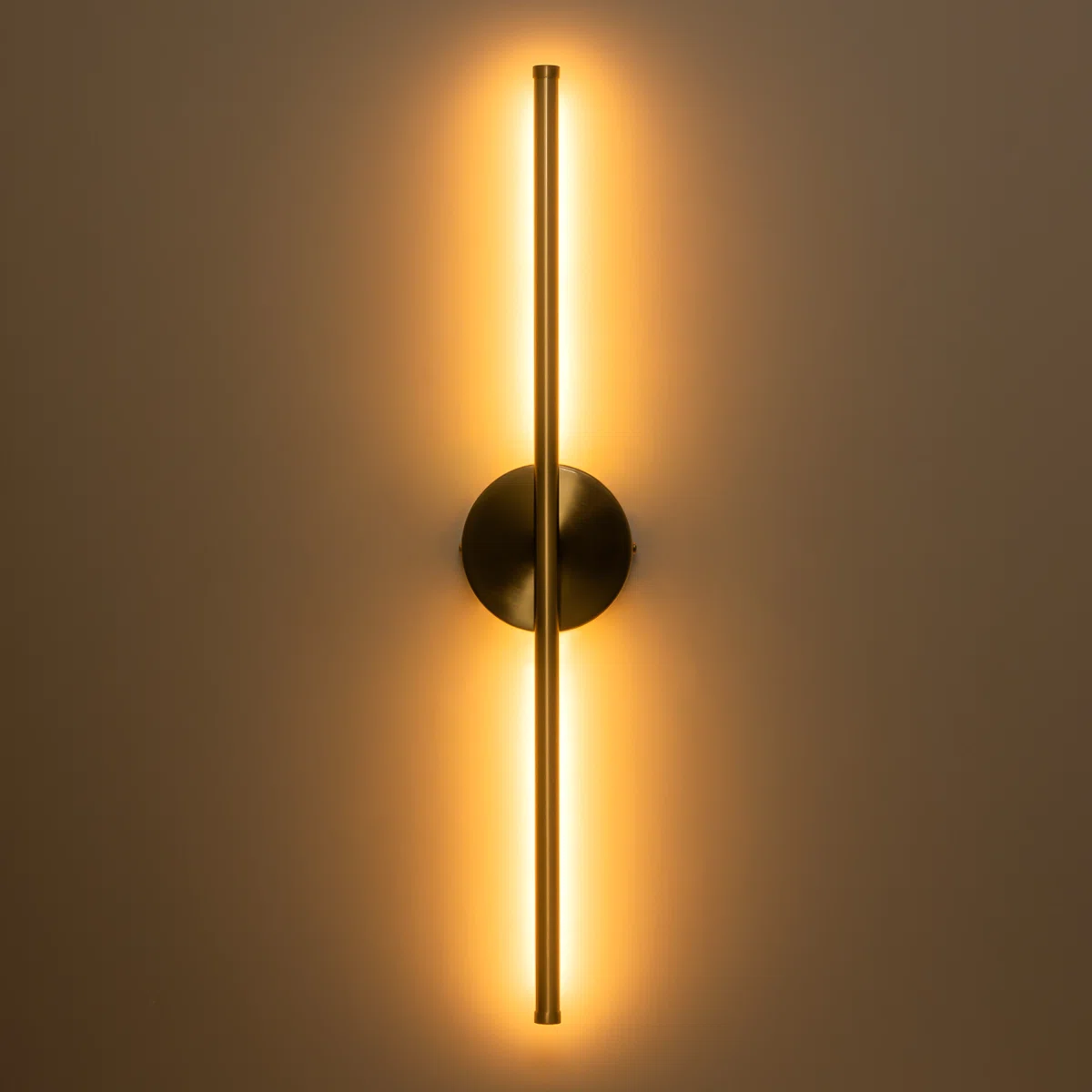 Brynie Gold Iron LED Hardwired Semi Flush Mounted Wall Sconce. This sleek