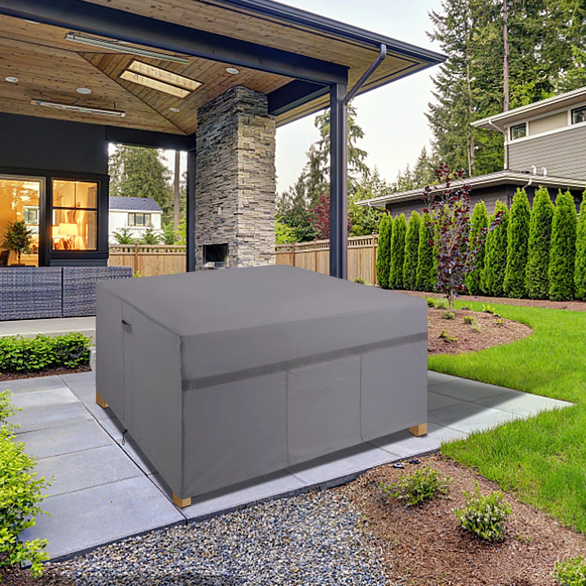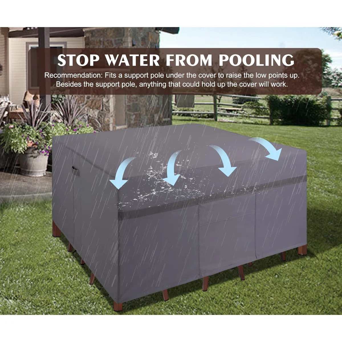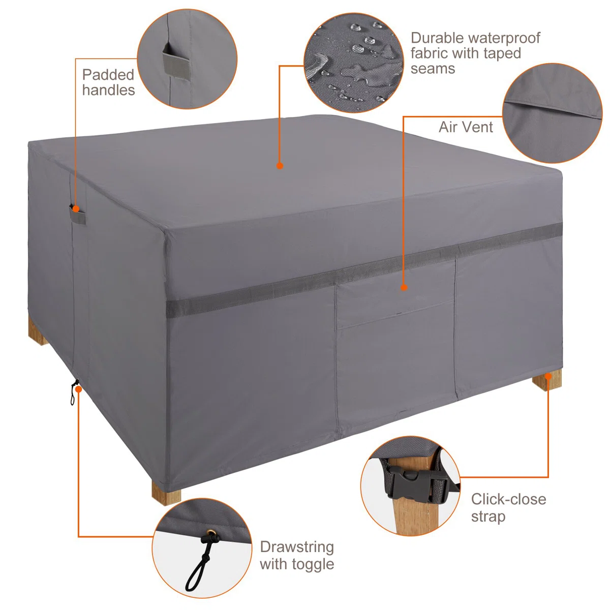 Waterproof square patio dining set cover for all-season protection.