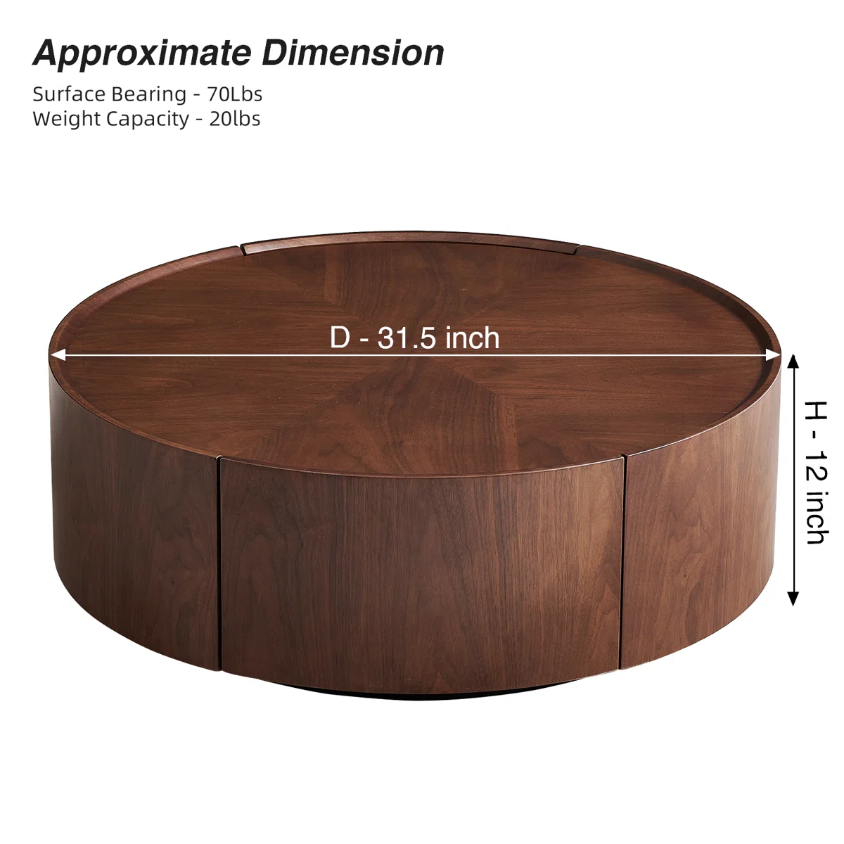 • Size: 12" H x 31" W x 31" D