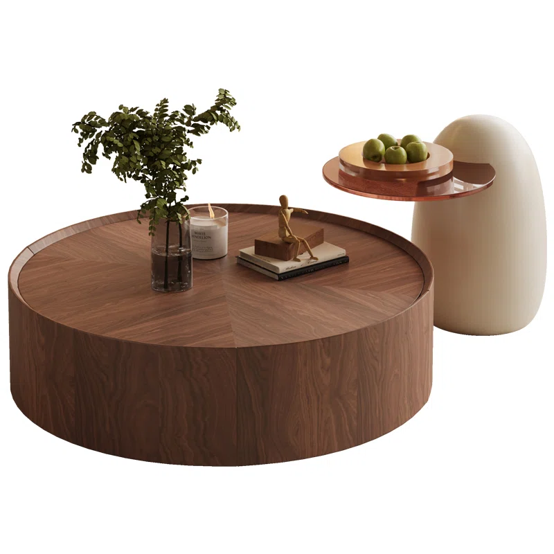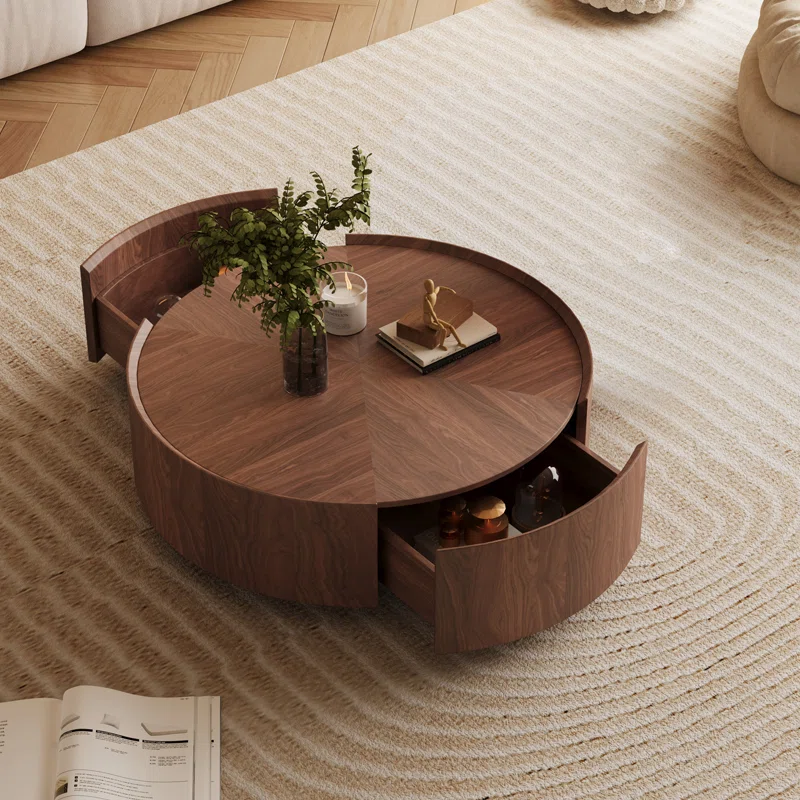The Viera Round Coffee Table by Wildon Home® brings refined elegance and practical storage to your living room. Designed with a rich mahogany veneer and a smooth, circular silhouette, this table blends effortlessly with both modern and transitional interiors. Two hidden, opposite-facing drawers allow for discreet storage, while the spacious internal compartment provides additional room for essentials. Crafted from durable manufactured wood with a protective clear varnish, this table is made to last—and arrives fully assembled for immediate use. A timeless, functional centerpiece for any living space.