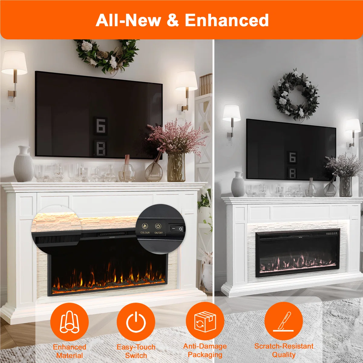 • Plug-in electric fireplace with 120V power cord (70.8" length)