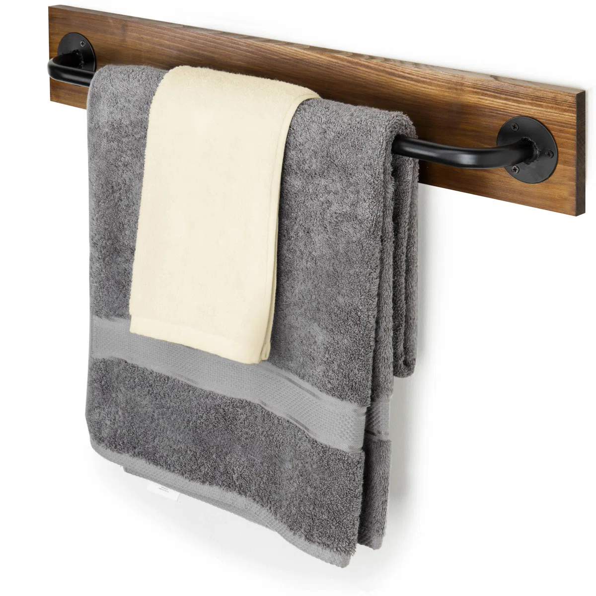 Add a touch of rustic charm and practical functionality to your bathroom with this 28" Wooden Wall-Mounted Towel Bar. Designed with a natural brown wood finish, it brings warm, organic style to any wall while offering a sturdy place to hang bath towels, hand towels, or decorative linens. Perfect for modern farmhouse, rustic, industrial, or minimalist interiors, this towel bar blends aesthetics with convenience. The wall-mounted construction ensures secure placement and efficient use of space, making it ideal for smaller bathrooms or areas where you want to keep towels neatly organized. Crafted from durable wood and metal hardware, this towel bar provides long-lasting strength and everyday reliability. Whether upgrading your bathroom or completing a new décor theme, this 28-inch wooden towel bar adds functional elegance to your home.
