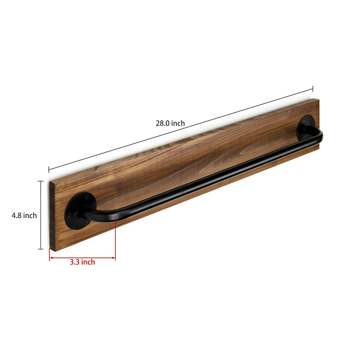 28-inch wooden wall-mounted towel bar with a rustic brown finish.
