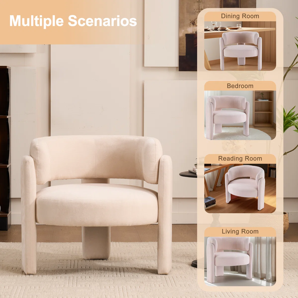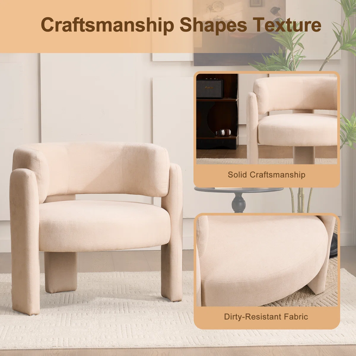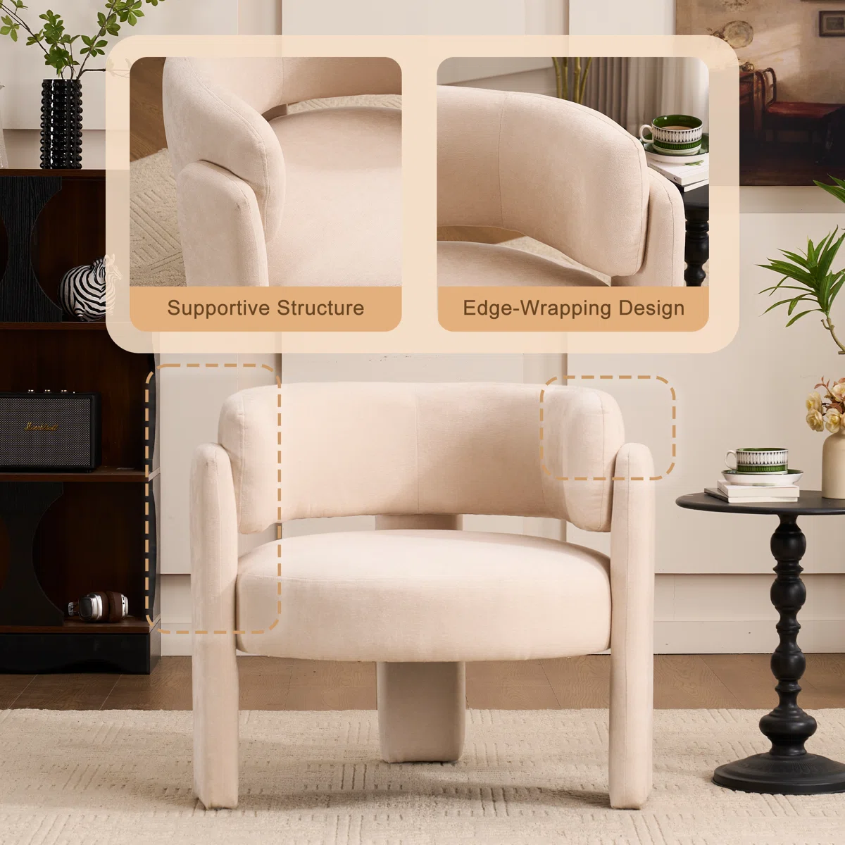Add a modern touch to your living space with the Wrought Studio™ Modern Geometric Upholstered Accent Armchair. Featuring a beige fabric upholstery and elegant curved backrest, this chair provides both comfort and style. Perfect for living rooms, bedrooms, or reading nooks, it complements contemporary interiors while offering a cozy seating option.